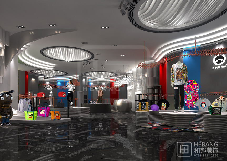 | 設(shè)計說明 | 極具現(xiàn)代風(fēng)格,豐富的色彩運(yùn)用以及富有童趣的設(shè)計元素使整個賣場氛圍輕松、明快。創(chuàng)意十足的天花設(shè)計以及吸引眼球的墻面裝飾更能吸引消費(fèi)者眼球。 | ||||