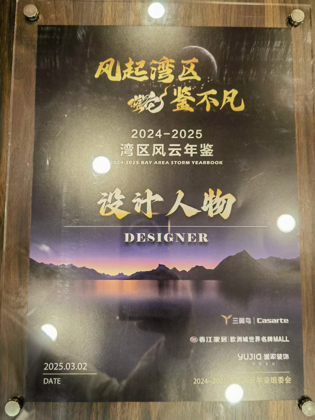 2025 年 3 月 2 日,【風(fēng)起灣區(qū),鑒不凡】2024-2025 年灣區(qū)設(shè)計風(fēng)云年鑒系列活動在深圳盛大啟幕,和邦裝飾創(chuàng)始人劉擁軍受邀出席,憑借在設(shè)計領(lǐng)域的深厚積淀與突出貢獻,一舉斬獲 “年鑒人物” 與 “設(shè)計人物” 雙項榮譽稱號,成為現(xiàn)場焦點。